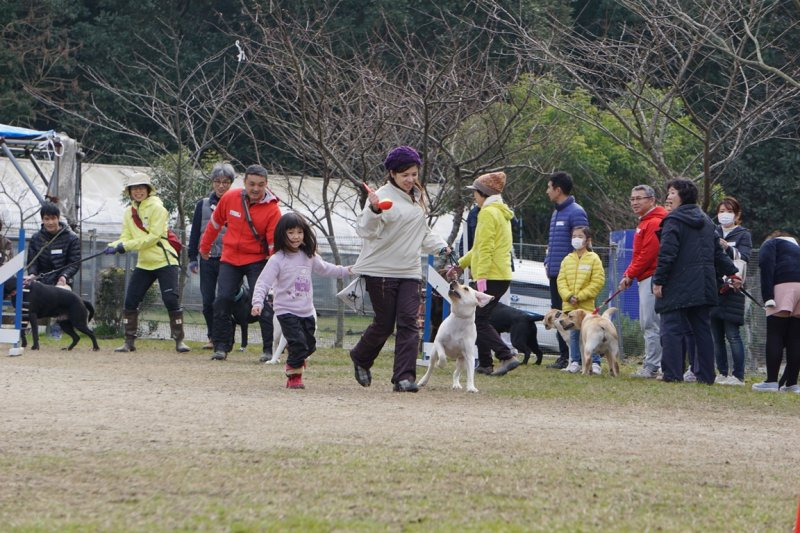 開催日は、朝から小雨模様で雨の犬舎祭を覚悟していましたが、飼主の皆さんと愛犬の願いが通じて開催時間の13:00になった頃には雨も上がりました。愛犬たちは、広場を元気に走り回り、その様子を嬉しそうに見守っている飼主の皆様同士が楽しく交流できました。