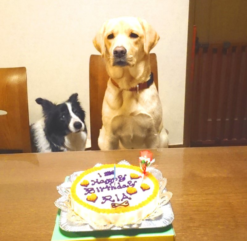 お誕生日には、ワンちゃん用のケーキでお祝いをしました!