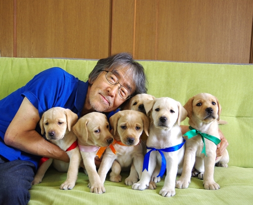 しかし、この豪雨の激しい雨音と雷の鳴り響く中でも、我が家のラブ達は、相変わらずいつもと変わらず、しっかり食べ、外に出られないので室内でおもちゃで遊んだ後は、へそ天井で爆睡しています。私たちの心配はどこ吹く風で、不安な私が励まされて落着かねばいけないと教えられています。こなな母さんの子犬たち6頭も一生懸命食べ、兄妹で遊んで、スヤスヤ眠っています。