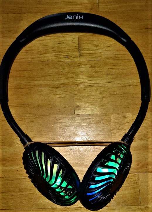 反転させて後側を冷やすのも効果的かも、レインボーカラーに発光しますので夜間の散歩の安全にも役立ちます。