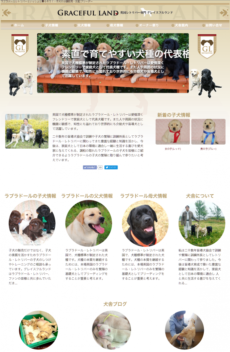 ホームページを全面リニューアルしました。スマホ、タブレットからアクセスしやすく、文字や写真を大きくしています。またオーナー様同士のコミニュケーションの架け橋となるよう、グレイスフルランドの輪を多くの皆様と共有できるように変更しています。 お知り合いの方のラブラドールとの暮らしを是非共有してください。各ページにある検索窓から、気になるフレーズで検索していただくと意外な方と繋がることが出来るかも。皆様の愉しいお便り待ちしております。