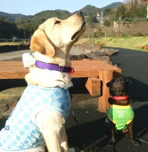 それと動く物に興味を示し、風に飛ばされた葉っぱを口にします。訓練はまだまだですが、最初に比べると良くなっています。今日も、黒パグのフランク兄さんと一緒に散歩に出かけましたが、私一人で2頭散歩させることができました。グレイスフルランドでは仔犬たちの旅立ち、新しい仔犬の世話等大変でしょうが、体調を崩されないように頑張ってください。