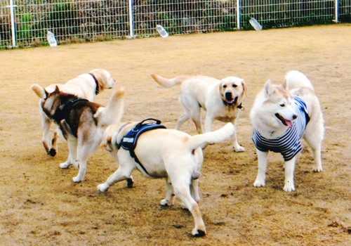 梅雨に入り雨の日が多くつまらない様子で寝てばかりいます。遅くなりましたが今年2月にグレイスフルランドから三重県にやってきたラブラドール3匹で明和町にあるドッグランベスカで遊ばすことができました。