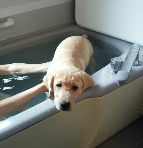 階段はウサギ跳びで上れるようになりましたが、下りれないため、抱っこをしております。運動音痴でお散歩が苦手なめいですが、水遊びは大好きで、毎朝シャワーを浴びております。先日、バスタブに勢いよくダイブしたものの、溺れかけました。最近のめいの写真を送ります。