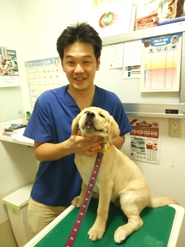 先日、先代犬ひめ姉ちゃんからお世話になっている獣医さんで、3回目のワクチン接種を受けて参りました。体重は14キロと随分大きくなりましたが、まだまだ甘えん坊の赤ちゃんです。24時間往診して下さるアミン動物病院の石川先生とのツーショット写真を送らせていただきます。ちなみに、石川先生は、ニュース番組の動物特集に出演されました。