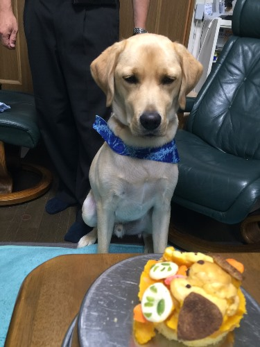 梅雨が明け、暑い日が続いており犬たちにとってはつらい毎日です。ベンジャミンは体調を崩すこともなく元気にしています。ベンジャミンの訓練は日中の気温が高く、地面のアスファルトの温度が高いため現在は控えています。