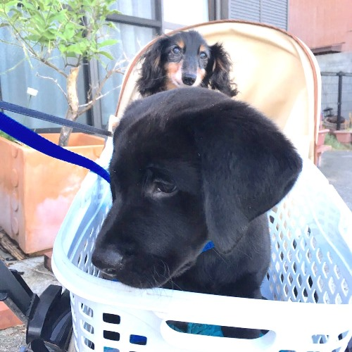 ご近所の方と触れ合ったり、子供や犬、猫達を見せたり、車の音にも怖がる様子はありません。