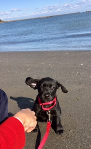 驚愕の食欲、体力、好奇心に満ちた行動力、爆睡力などなど発揮中。更に、それらは、日々ますます進化中であり、将来は、女性版ソロモン?元気一杯なので、少々、早いかもですが、我が庭の散歩デビューのみに飽き足らず、砂浜デビューも、経験させてしまいました。