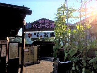 宿泊は岡山の湯原温泉に。ここには、ひまわりの湯というペット専用の露天風呂がありました。