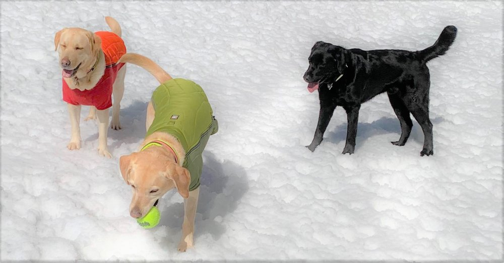 3匹とも、仲良く雪の上ですこしの間遊んでいました。