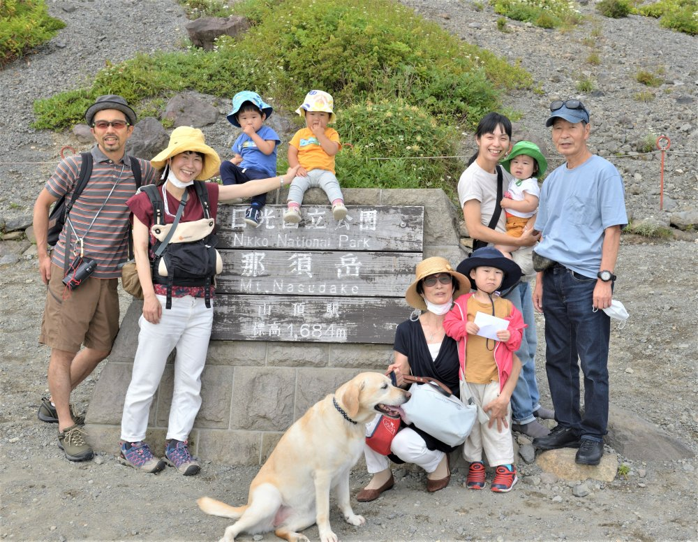 先日家族と那須高原に行ってまいりました。オチビ4人に揉まれてもめげずにロープウエイに乗って那須岳に登りました。もちろんロープウエイの中は大型のケージの中に入れられましたが、なんだかわからないうちに終点について、家族のみんなと記念撮影しましたので近況をご報告いたします。
