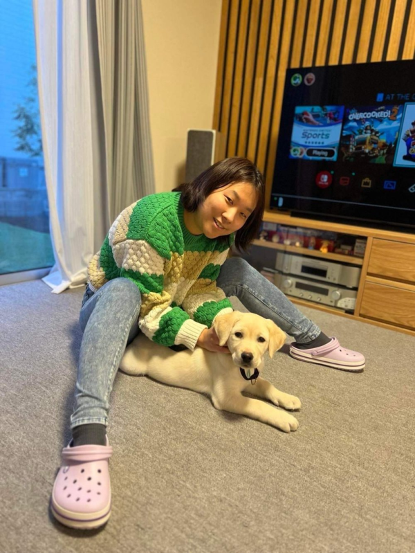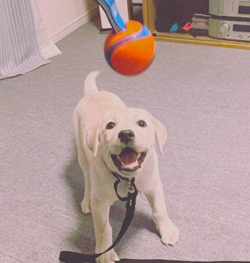 毎日少しずつ大きくなっていく姿がとても愛おしいです。甘噛みの躾は結構難しいですが、それでもだんだんと噛んではいけない所を理解してきているかなという感じです。