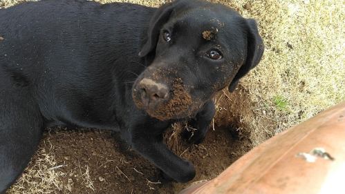 庭で芝生の草取りしてたらお手伝いしてくれます。(穴掘り)
